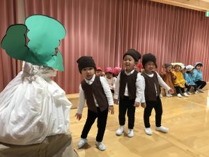 本日は、初めてのおたのしみ会のリハーサルを行いました。