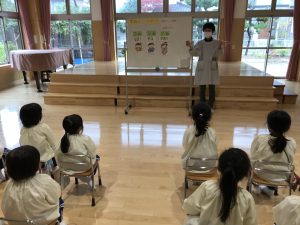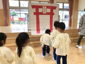 2022.11.08 お知らせ, 日々の様子 七五三の集い 今日は、七五三の集いがありました。 子ども達は七五三の由来を聞いて、 周りの人のおかげでここまで大きくなれた事を学んでいました。 手作りの物見山神社に参拝をしていました。