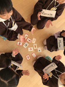 2022.11.09 お知らせ, 日々の様子 ABC(英会話教室) 今日は、ABC(英会話教室)がありました。 色々な英単語を教えてもらって覚えていました。 覚えた単語で英語版のカルタ取りをしていました。