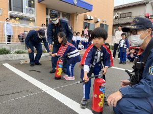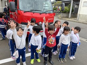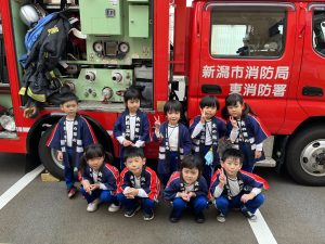 2023.10.20 お知らせ 10/20 避難訓練 消防車出動 今日は避難訓練がありました。 保育園では、毎月1回避難訓練を行っていますが、 今回は、新潟市東消防署の消防士さんが来てくれて、 避難の指導してくれたり、水消火器で消化の仕方を教えてくれました。 消防車との写真も大喜びでした。