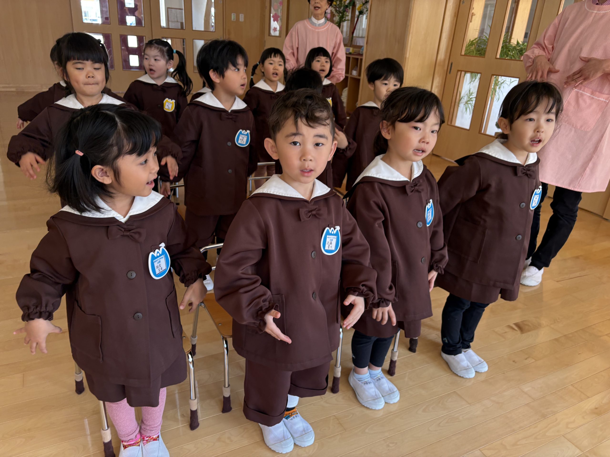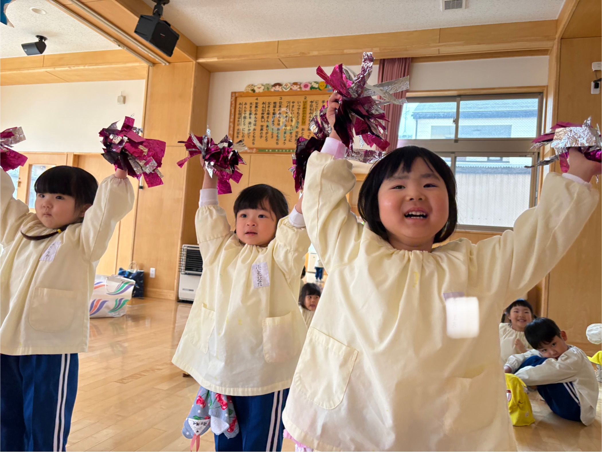 元気いっぱいに踊る姿が可愛いですね。3歳児もも組さん