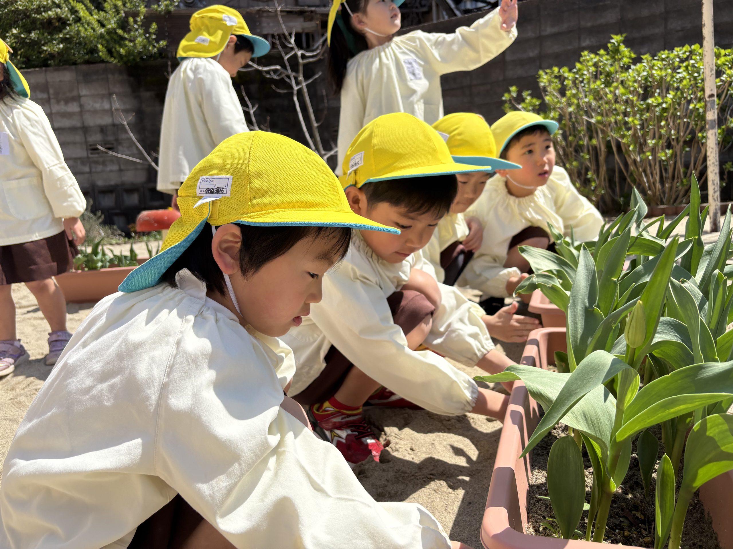 チューリップフェスティバルへの出展準備をする 5歳児ちゅうりっぷ組さん