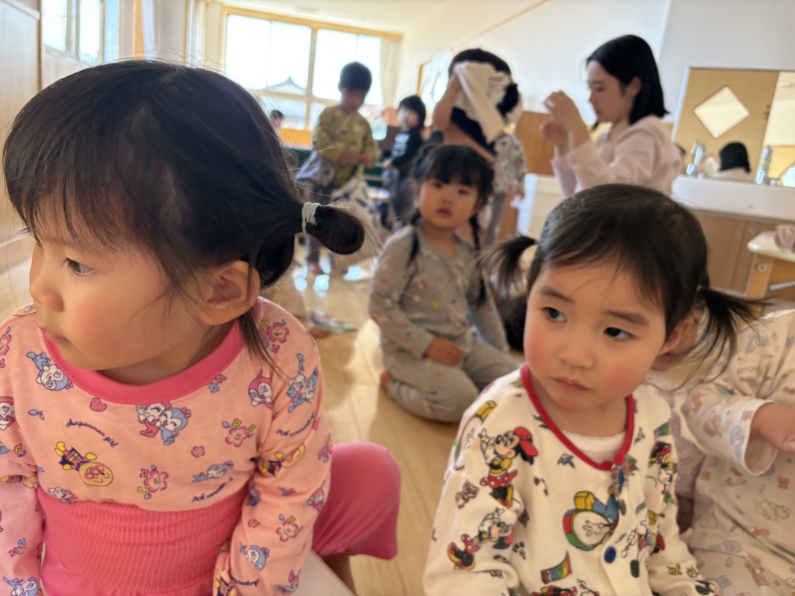 お昼寝の時にパジャマを着るようになった2歳児つくし組さん