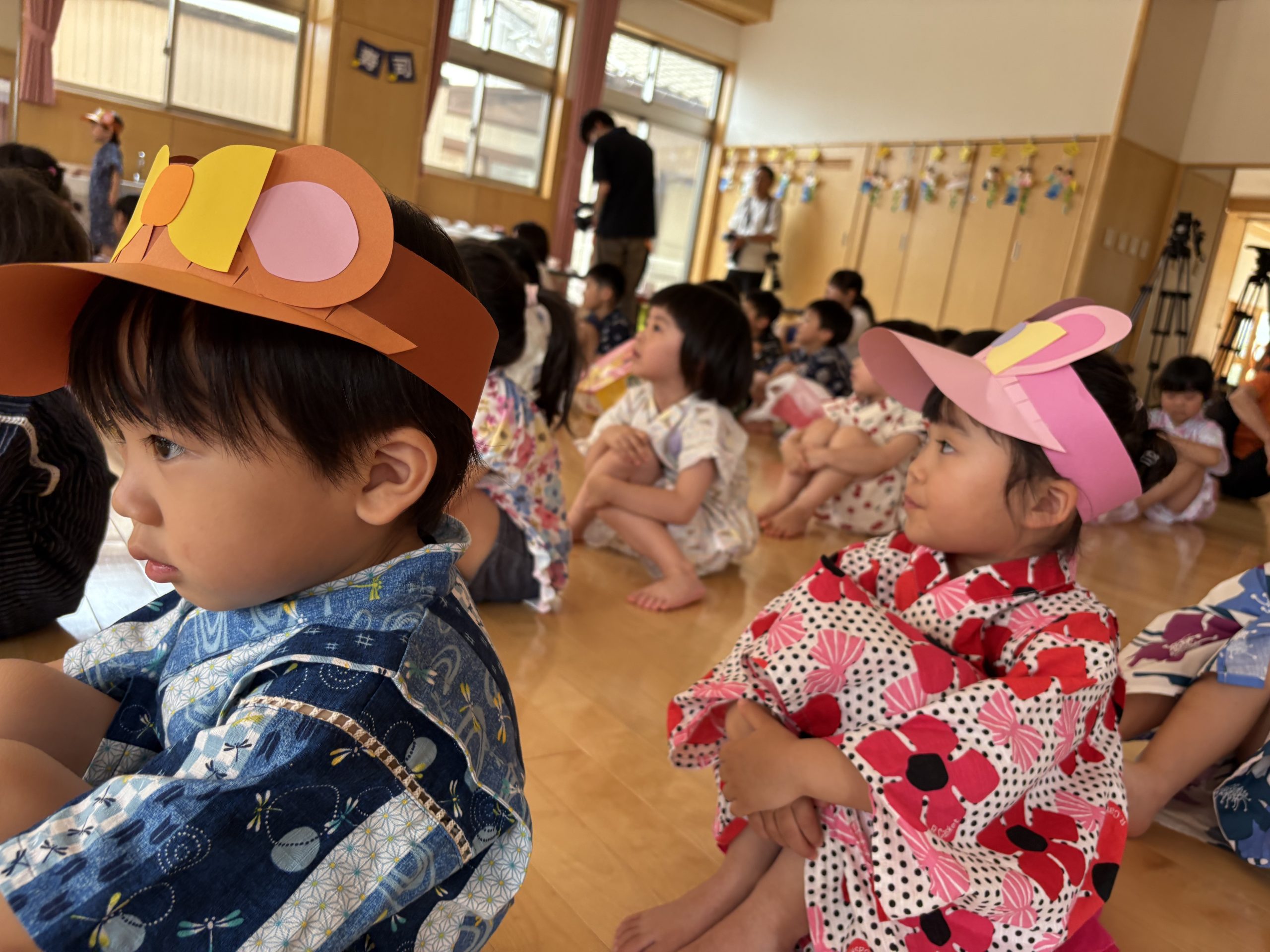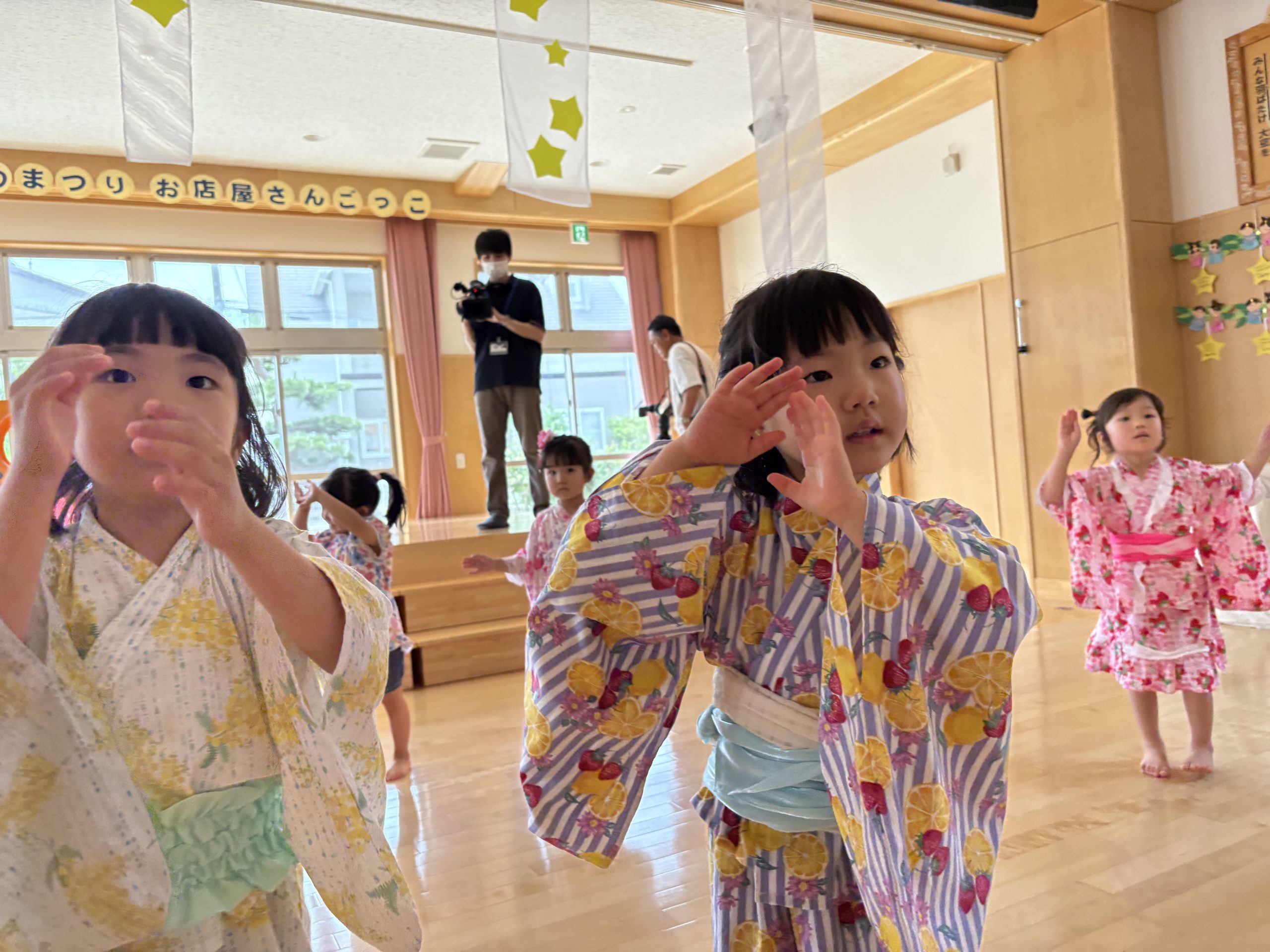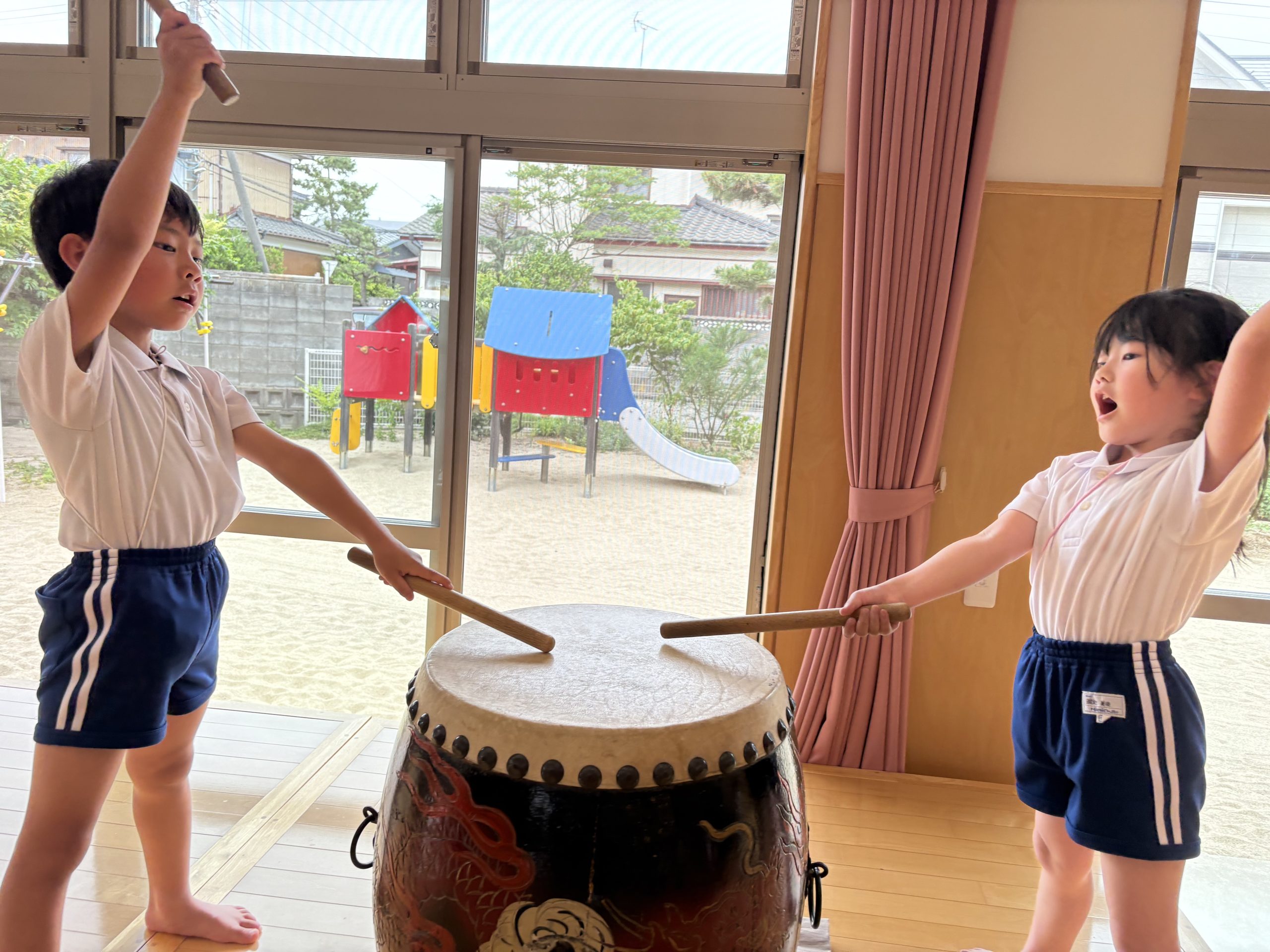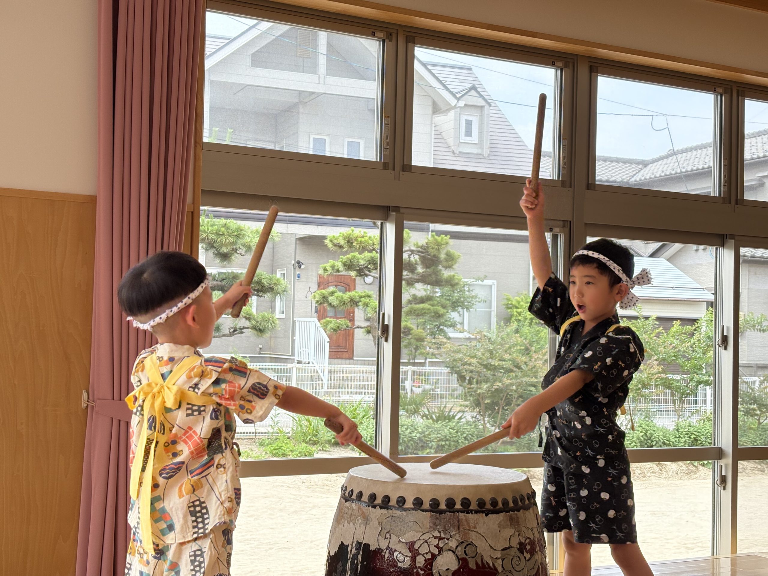 ちゅうりっぷ組さんの力強い和太鼓から始まった、当園の夏のお祭り。