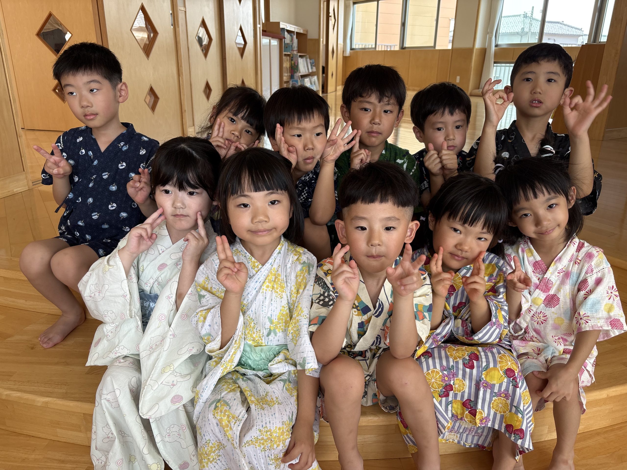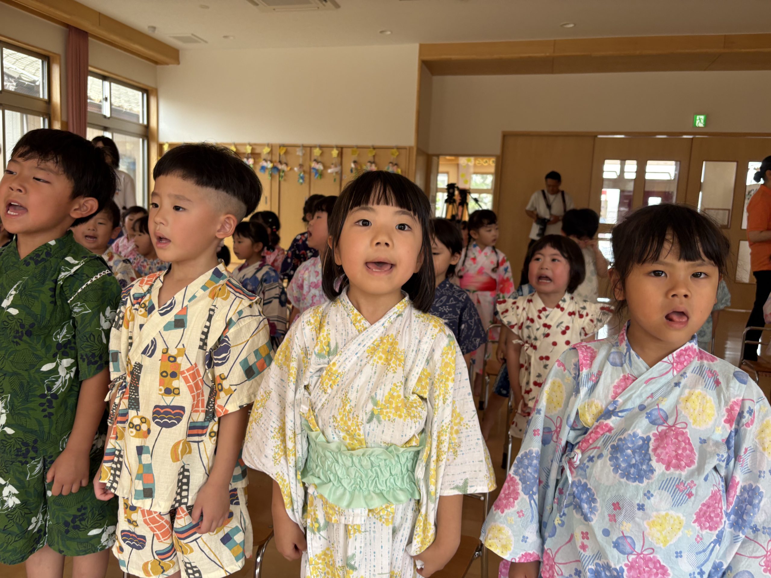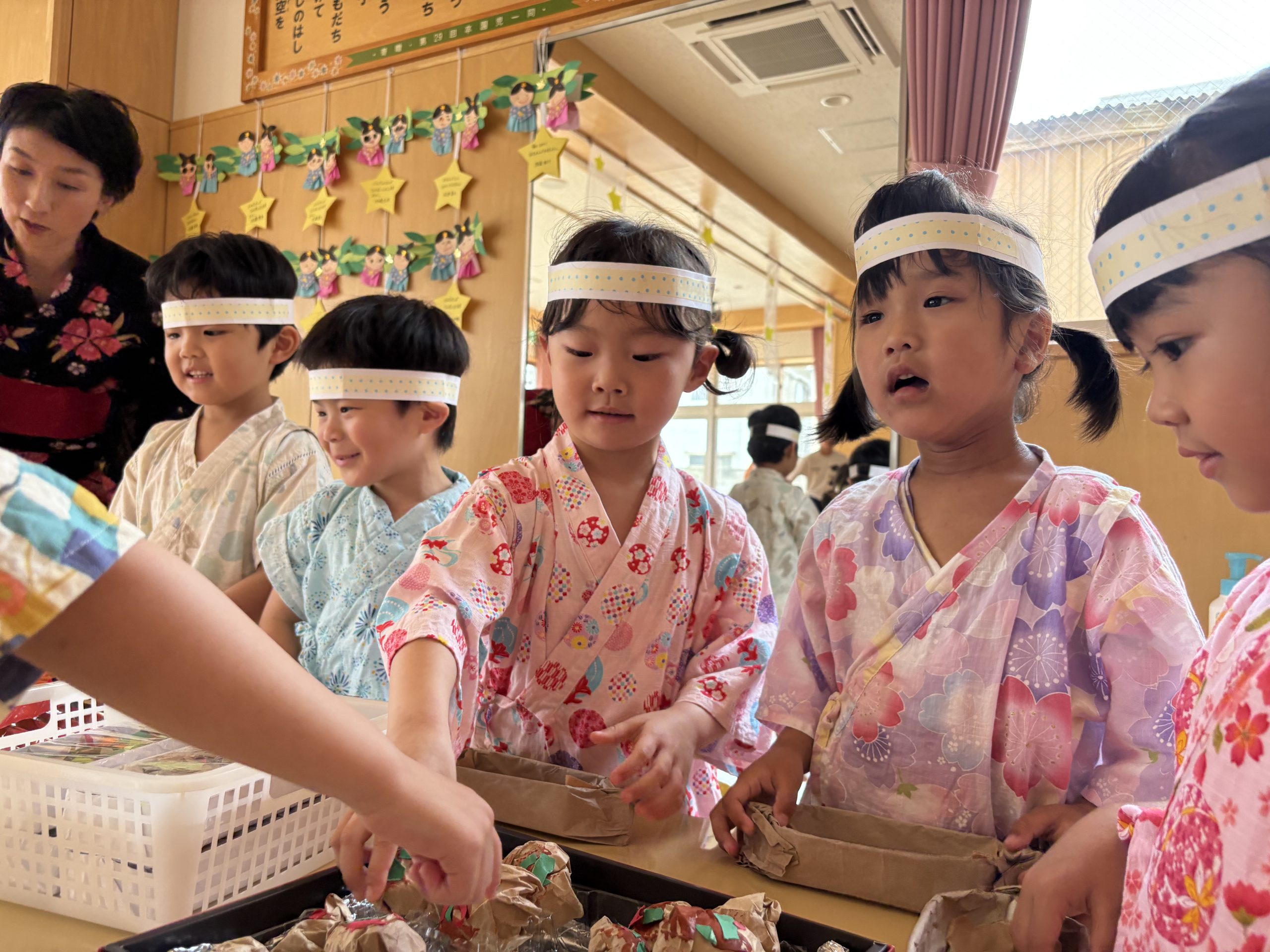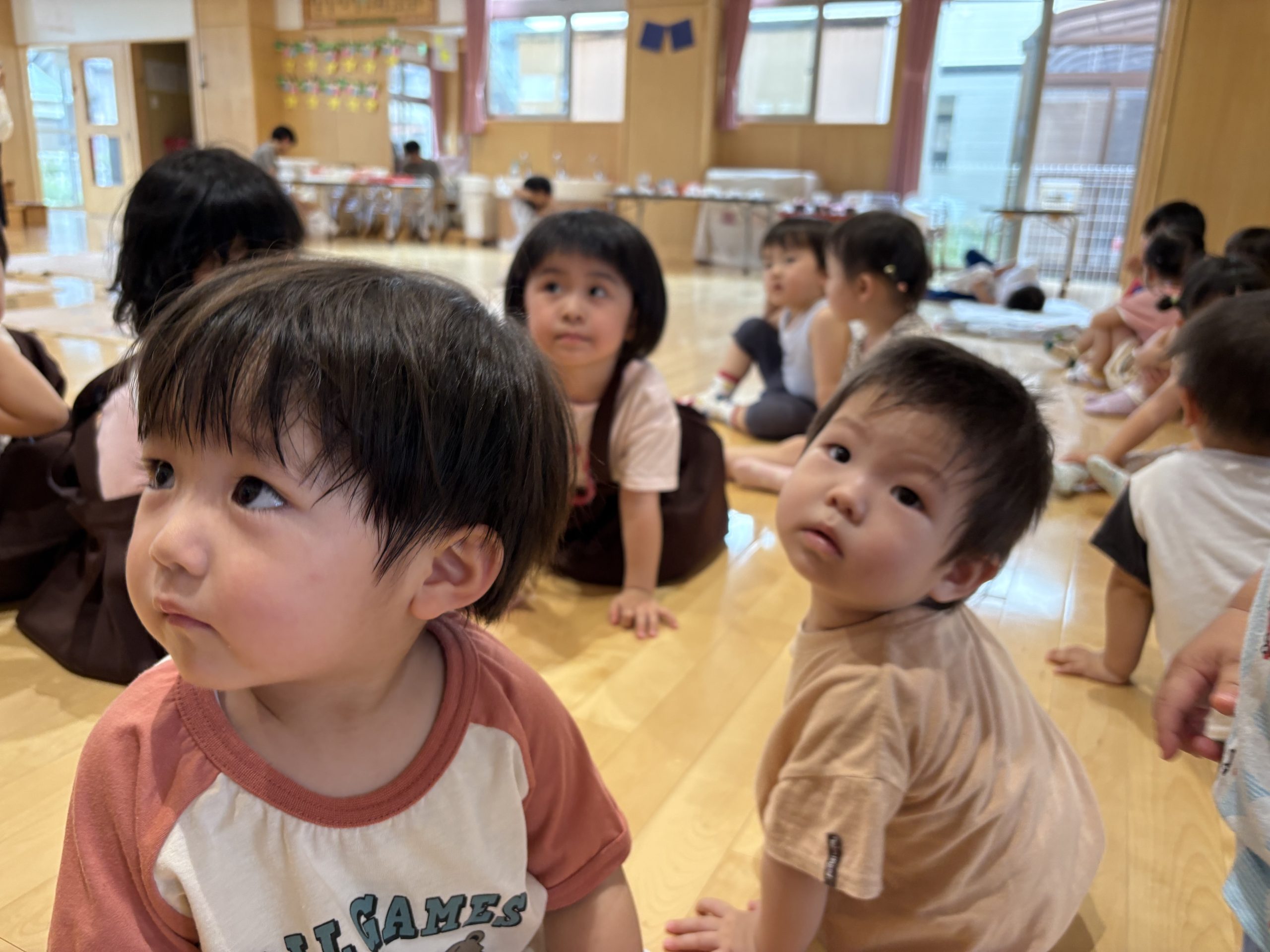 ちゅうりっぷ組さんの力強い和太鼓から始まった、当園の夏のお祭り。