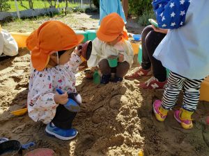 2歳児ばなな組さんは砂遊びをしました。