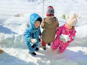 2022.01.21 お知らせ 雪遊び、大好き💖 雪遊びが大好きな子ども達。 今日もお外に出て、元気一杯遊びました。 体をたくさん動かして遊んだ後は・・・おいしい給食です。 今日の献立は * 鶏肉のマーマレード焼き * ポテトサラダ * かき卵汁 午後は手作りおやつ、のり塩クラッカーでした 😊 沢山食べて、大きくなっています。 今日は、身体測定でした。おがスマで配信していますので 成長の様子をご覧ください。