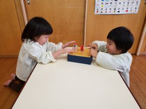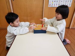 ばなな組さんは今、トントン紙相撲が流行中です!!