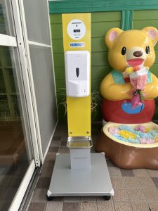 そして、保育園の玄関に新しい消毒付き検温スタンドを設置しました。
