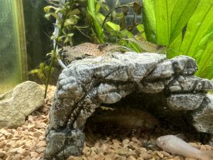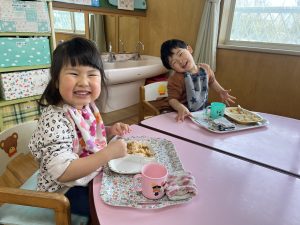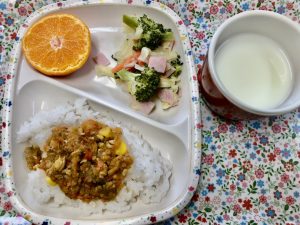 2022.03.07 お知らせ 新しい仲間が増えました💕 保育園の玄関の水槽にミナミヌマエビとヤマトヌマエビが仲間入りしました🦐 この岩の上がお気に入りでよく集っています😊 子どもたちも登降園の際に「エビさんいたかなー?」 「いた!!かわいいねー💕」と喜んで見ています👀 今日のお給食はドライカレー🍛 いちご組1歳児さんは上手にスプーンを使って ニコニコで食べていました! ♡今日のメニュー♡ *大豆入りドライカレー *ハム入りブロッコリーサラダ *牛乳 *果物 ♡おやつ♡ *きなこラスク *お茶