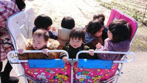 0歳児いちご組さんはカートに乗ってお散歩に行きました✨
