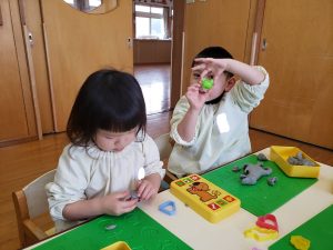 2022.03.15 お知らせ 今日の様子♡ ばなな組さんの粘土をして遊んでいる様子です! 色々な形の型を使ってクッキー、カップケーキなどおやつ作りを楽しんでいます😊 作ったものを「召し上がれー!」とお友だちに差し出していました! いちご組さんは大型ブロックでお風呂を作って、 「おっきー!」と喜んで仲良く一緒に入っていました💕 今日はネギも収穫しました! お給食でおいしくいただきます🙏 ♡今日のメニュー♡ *かきあげ *うどん汁 *焼きのり ♡おやつ♡ *果物 *ビスケット *牛乳