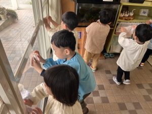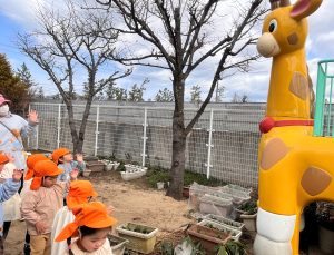 最後のお別れで保育園の回りをお散歩すると、今まで子どもたちが遊んでいた遊具にも
