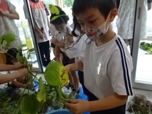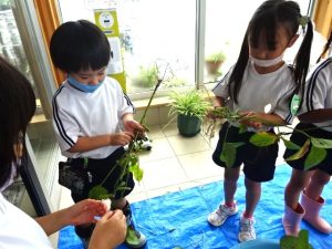 その後は、畑で育てていた枝豆もぎをみんなでしました🎶