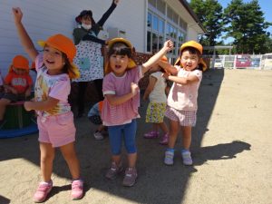 4歳児めろん組さんは海賊、3歳児もも組さんはお野菜マンに変身をして運動会を楽しみます😊