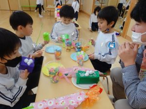 年長ぶどう組さんは「お店屋さんごっこ」の準備をしていました😊