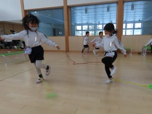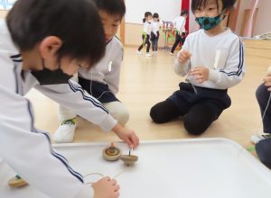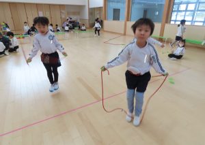 3歳以上児さんでは、なわとびやコマ、あやとりに挑戦する姿が見られています😆