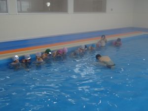 5歳児ぶどう組さんは「クロール」の手の動きや息継ぎのやり方を教えていただきました🏊