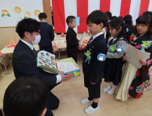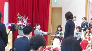 園長先生から卒園証書をいただき、お家の方へ感謝の気持ちを伝えました💓