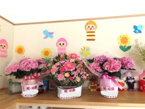 卒園式をお祝いし、たくさんのきれいなお花をいただきました😊🌺