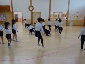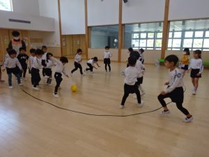 5歳児ぶどう組さんは、転がしドッチボール🥎とても白熱しています✨
