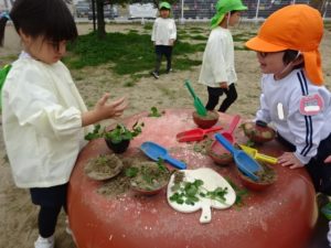 お砂遊びが大好きな子ども達です✨美味しそうなごちそうが出来上がっていました😆
