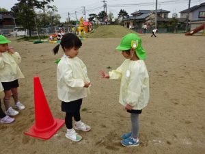 今日は曇り空でしたが、久しぶりに園庭で遊びました😊