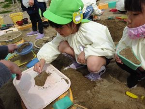 5歳児ぶどう組さんは砂遊びを楽しんでいました✨