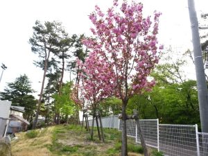 園舎前の八重桜も満開でとても綺麗に咲いています🌺