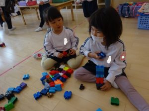 3歳児もも組さんは、お部屋でじっくり遊んでいました✨