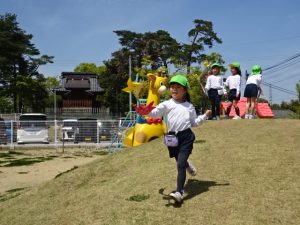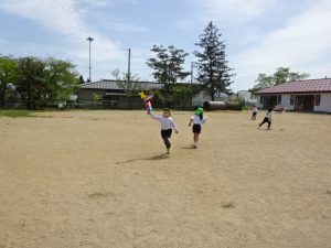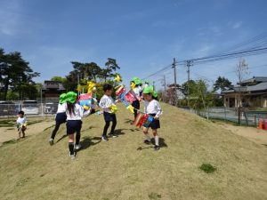 園庭では完成したこいのぼりを5歳児ぶどう組さんが泳がせていました🎏