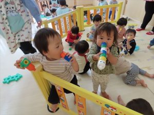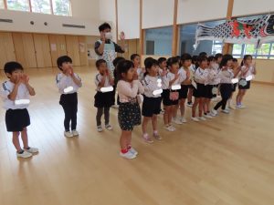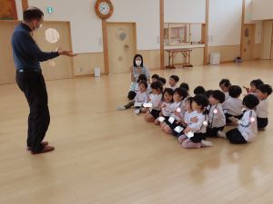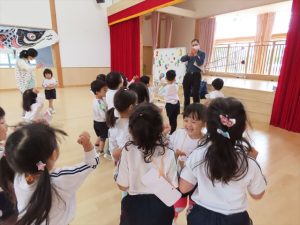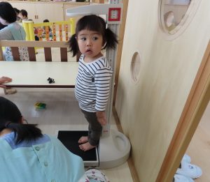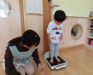 2023.05.24 お知らせ 発育測定(未満児)&ABC英語教室(以上児) 今日は未満児さんの発育測定でした👀 大きくなったかな??上手に測定をしてもらっていました👏 3歳児もも組さんは初めての英語教室✨何をするのかな?と興味津々です😊 数字を英語で教えてもらいましたよ👀 数字を探すゲームもしました😊 4,5歳児さんは、久しぶりの英語教室でした✨ 英語で動物や虫の名前を学んだり、数を数えたりしました🎶 クイズに当たると大喜びです😆✨ お部屋やお外でもたくさん遊びましたよ🍀 明日は4,5歳児さんのプール指導です🏊