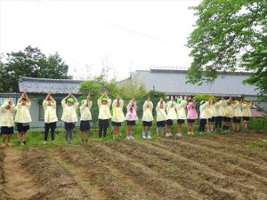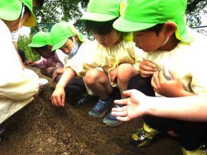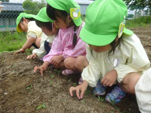今日は畑に5歳児ぶどう組さんが人参とオクラの種を植えました🌱