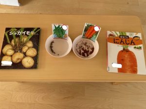 種の大きさや、色などを比べたり、絵本を通して育て方を学んでいました😊