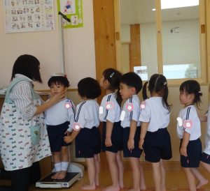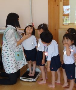 3歳児もも組さんは並んで順番を待っていましたよ👏