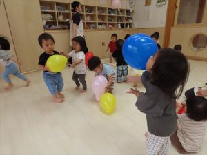 1歳児いちご組さんは風船遊び🎈きれいな色の風船に大喜び😆✨✨