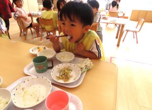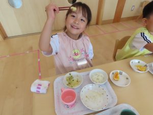 3歳児もも組さんは先週からお箸デビューです😋「みてー!!」と嬉しそうに見せてくれました👏