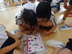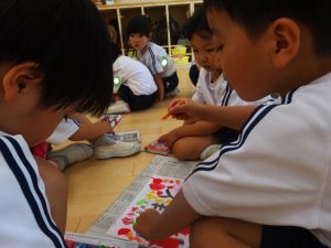 大きい組さんの真似をして作ったようです👀お友達と頭を寄せあって描いていました🖍️