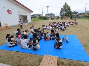 非常ベルの音に驚いたお友達もいましたが、スムーズな避難が出来ていました👏