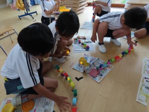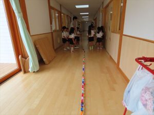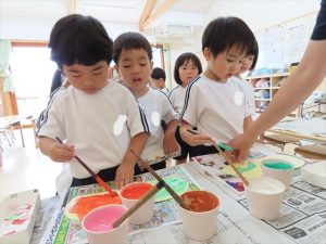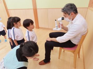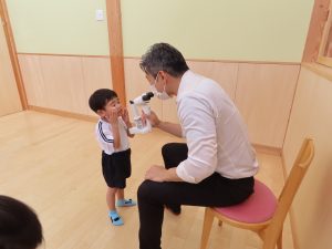2023.06.28 日々の様子 眼科検診を受けました👀 3歳以上児さんが眼科検診を受けました😊 初めはドキドキしていたようですが、泣いたりすることなく、お医者さんに 「あっかんベーで目を見せてね。」と言われると上手にできましたよ✨👏 七夕やはじめまつりの準備も始めました😆 5歳児ぶどう組さんは輪つなぎを作っていました👀お友達と力を合わせて長ーくしていましたよ 4歳児めろん組さんはクレープ作り😋 「生クリーム塗って…」「これは抹茶味💗」と絵の具をクリームに見立てて作っていました🍴