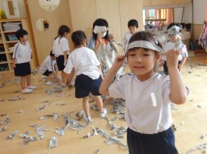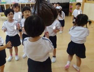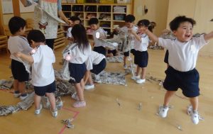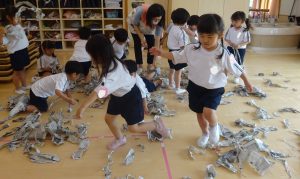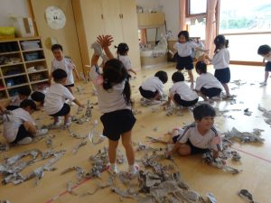 ちぎったり、丸めたり、投げたり、集めたり…色々な動きをしながら、