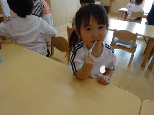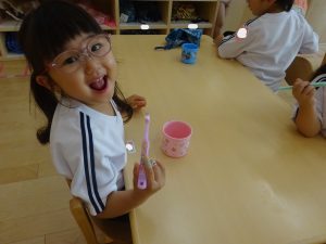 お友達と嬉しそうに歯ブラシを見せ合っていました🪥