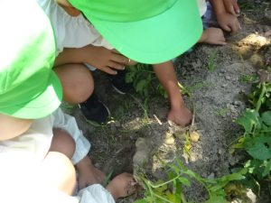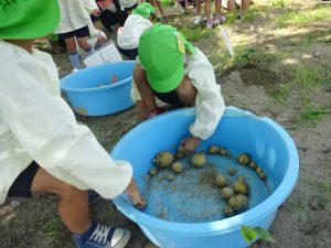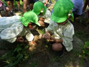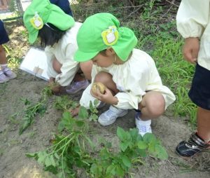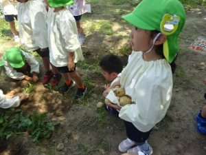 5歳児ぶどう組さんが畑で育てていたじゃがいもを収穫しました😊