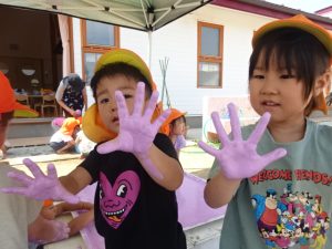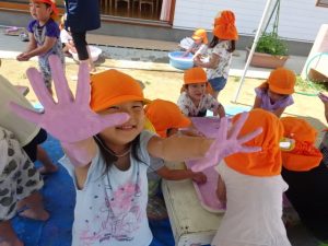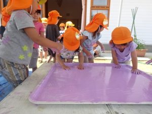 3歳児もも組さんは絵の具遊びをしていました😆🎶