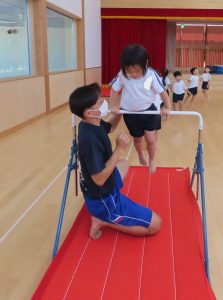 3歳児もも組さんは、鉄棒やマット運動の他に、