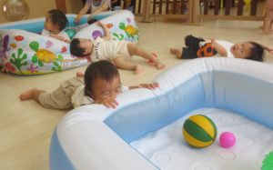 ごろんと転がったり、プールのふわふわとした感触を楽しんだり、