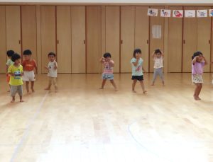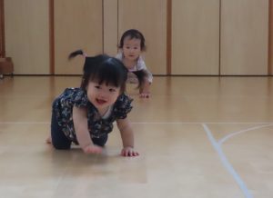 0歳児いちご組さんと2歳児ばなな組さんは遊戯室で体を動かして過ごしていました😆✨