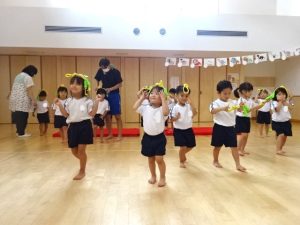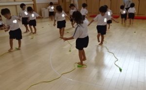 3歳児もも組さんは縄に触れて楽しみました🎶