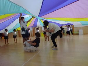 以上児さんたちのお遊戯を見たり、バルーンの時には中に入れてもらったりして