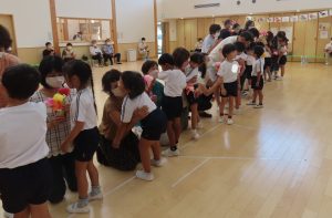 敬老の日についてのお話を聞いたり、運動会で披露した遊戯や競技を見ていただきました😊👏